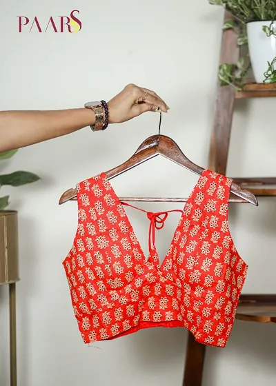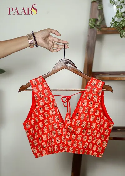 Ajrakh front & back V-neck with sleeve attached blouses.