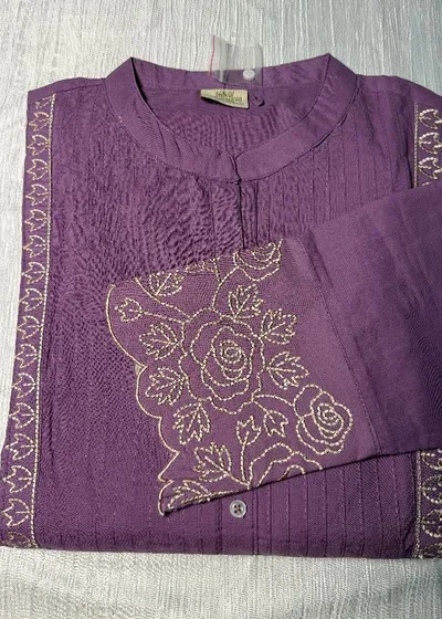 Yoke - Pin Tucks Yoke Design Embroidered Kurti with Scalped Sleeves