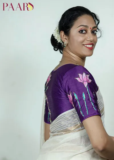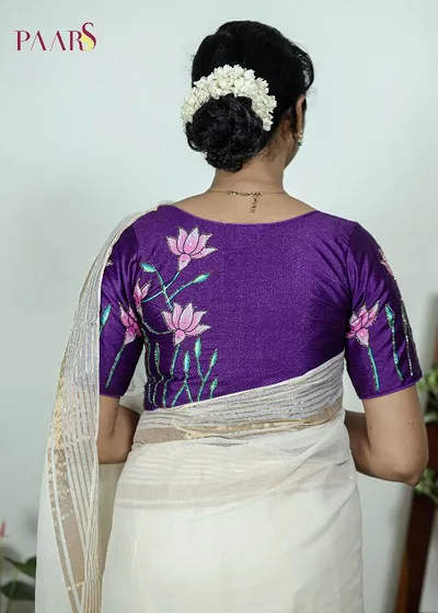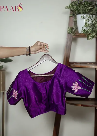 Lotus Printed Pichwai Designer Blouse With Sequins and cut beads Handwork