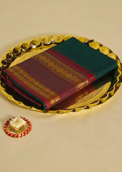 We are absolutely delighted to unveil our new DIWALI collection, ✨PAARS027✨, crafted from high-quality pure cotton with long golden zari and dark maroon borders. This fabric is renowned for its exceptional softness, making it incredibly comfortable to wear. The breathable nature of cotton ensures that you stay cool and relaxed, even on warmer days. Additionally, the stylish designs in this collection reflect contemporary trends while maintaining a classic charm. We believe this saree will add a touch of elegance to your wardrobe, making it perfect for any occasion.